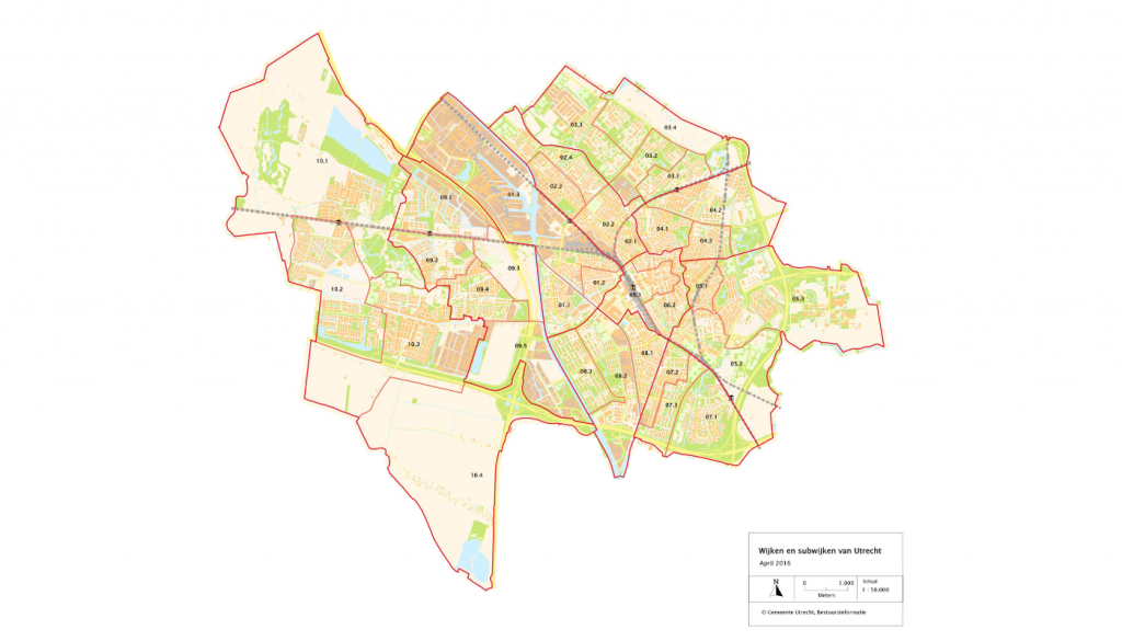 De gemeente heeft Utrecht verdeeld in negen 'hoofdwijken', welke vervolgens in verschillende subwijken zijn opgesplitst.