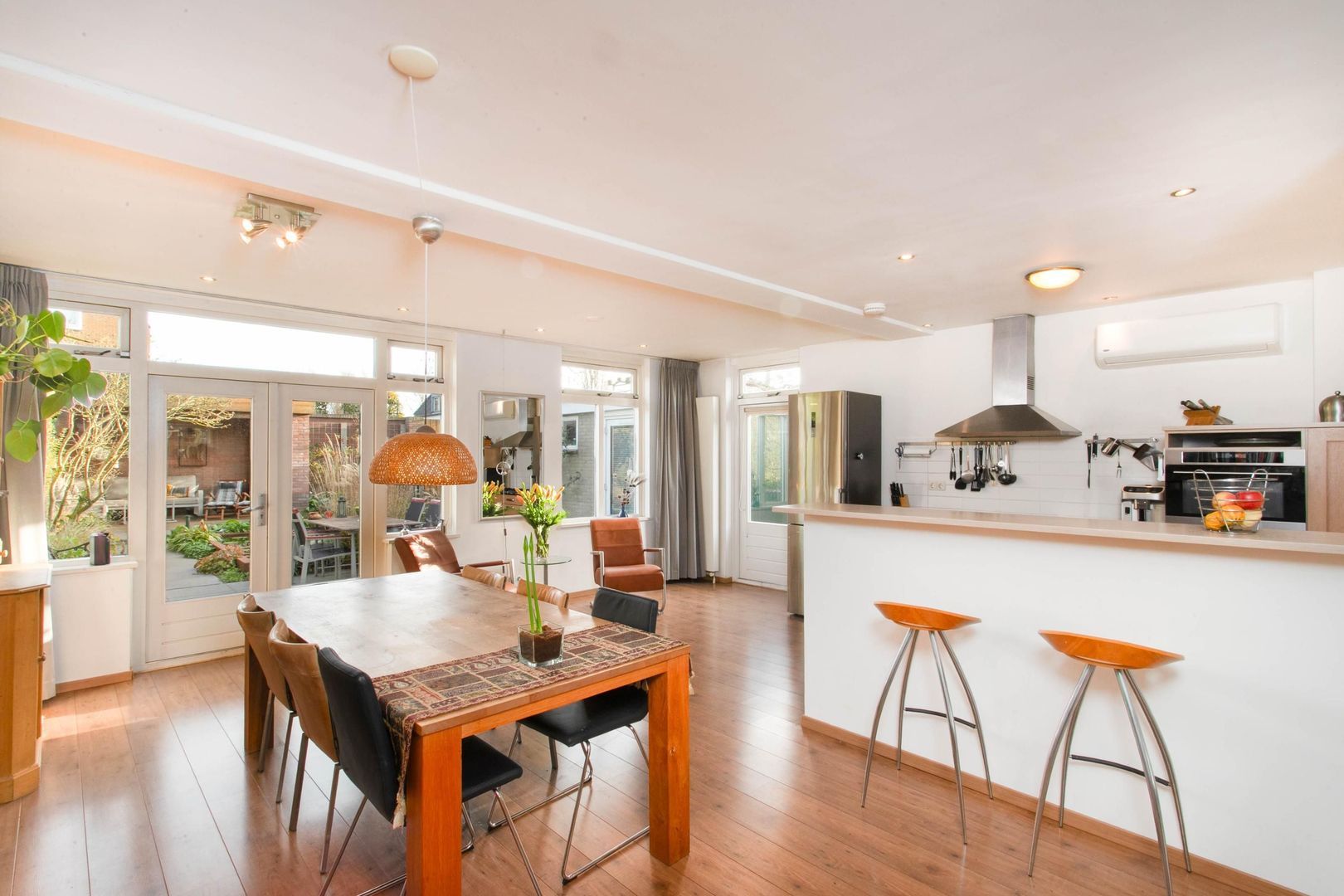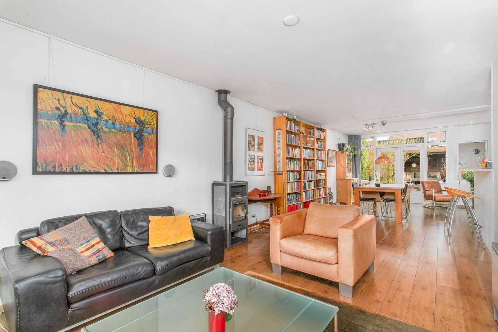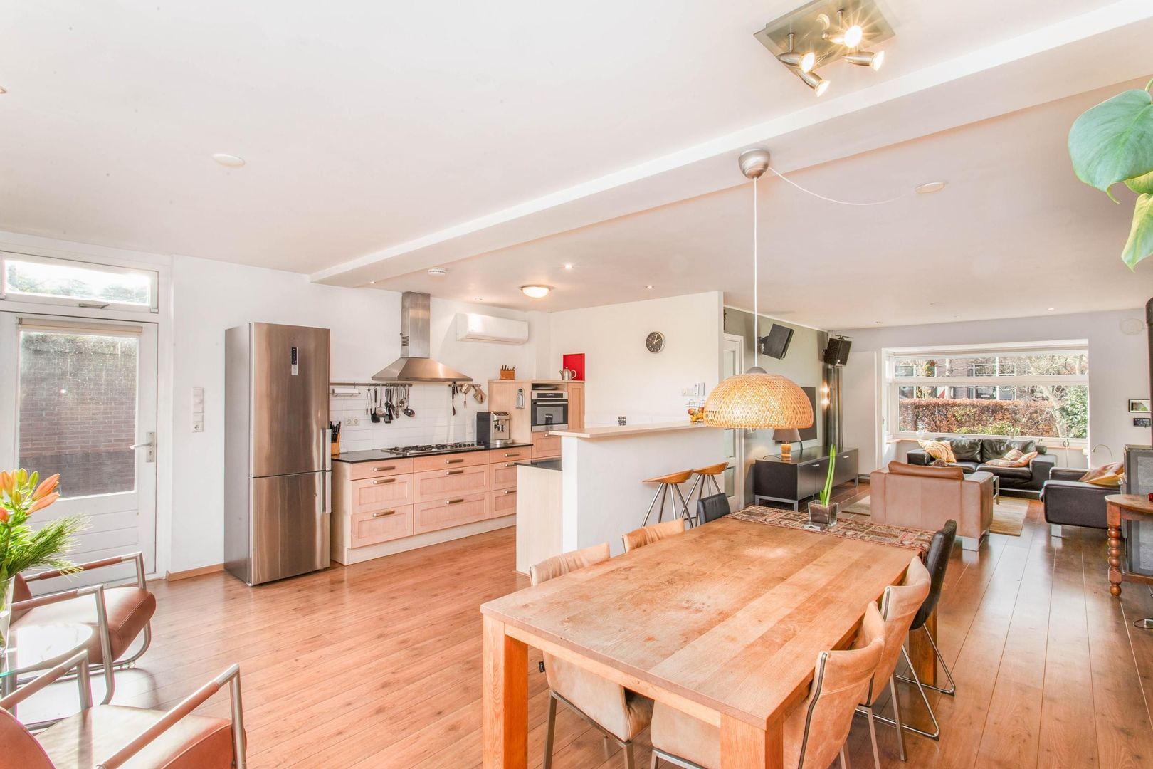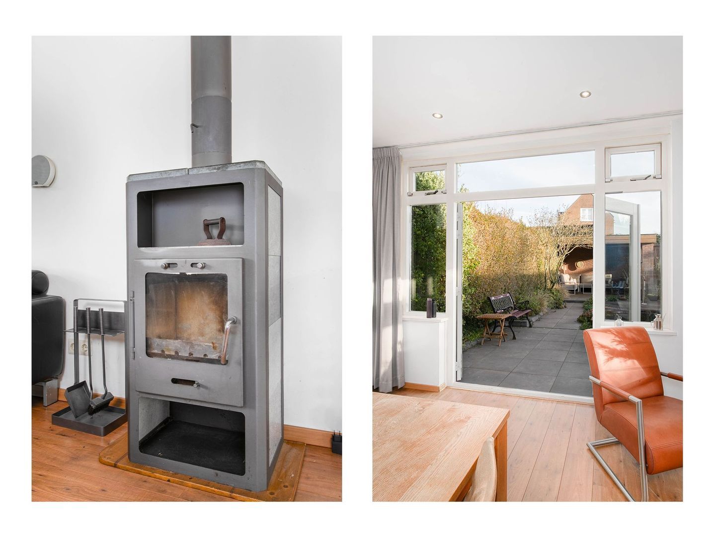 Via de voordeur komt u binnen in de hal met aparte toiletruimte. De woonkamer is ruim, voorzien van een karakteristieke kachel welke zorgt voor extra sfeer en warmte, waardoor dit een heerlijke plek is om samen te komen. De halfopen keuken staat in directe verbinding met de woonkamer en zorgt voor een ruimtelijk gevoel. De woonkamer biedt volop mogelijkheden voor meerdere zithoeken, een grote eettafel of een werkplek. De grote ramen zorgen voor veel licht en via de openslaande deuren loopt u zo de grote achtertuin in, met beschutte zitmogelijkheden.