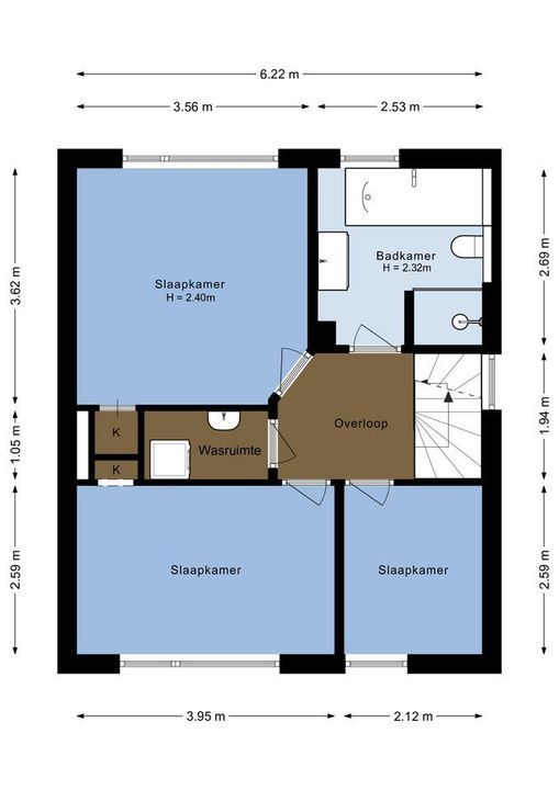 Vanaf de overloop bereikt u drie goed bemeten slaapkamers, elk met veel natuurlijke lichtinval en voldoende plek voor kasten. De badkamer is ruim opgezet en beschikt over een ligbad, aparte douche, toilet, wastafel en verwarming. Verder bevindt zich op deze verdieping de wasruimte, voorzien van een aansluiting voor een wasmachine en wasdroger. Deze verdieping biedt alle ruimte, van slaapkamers tot opbergplekken en werkplekken, het heeft alles wat u nodig heeft.