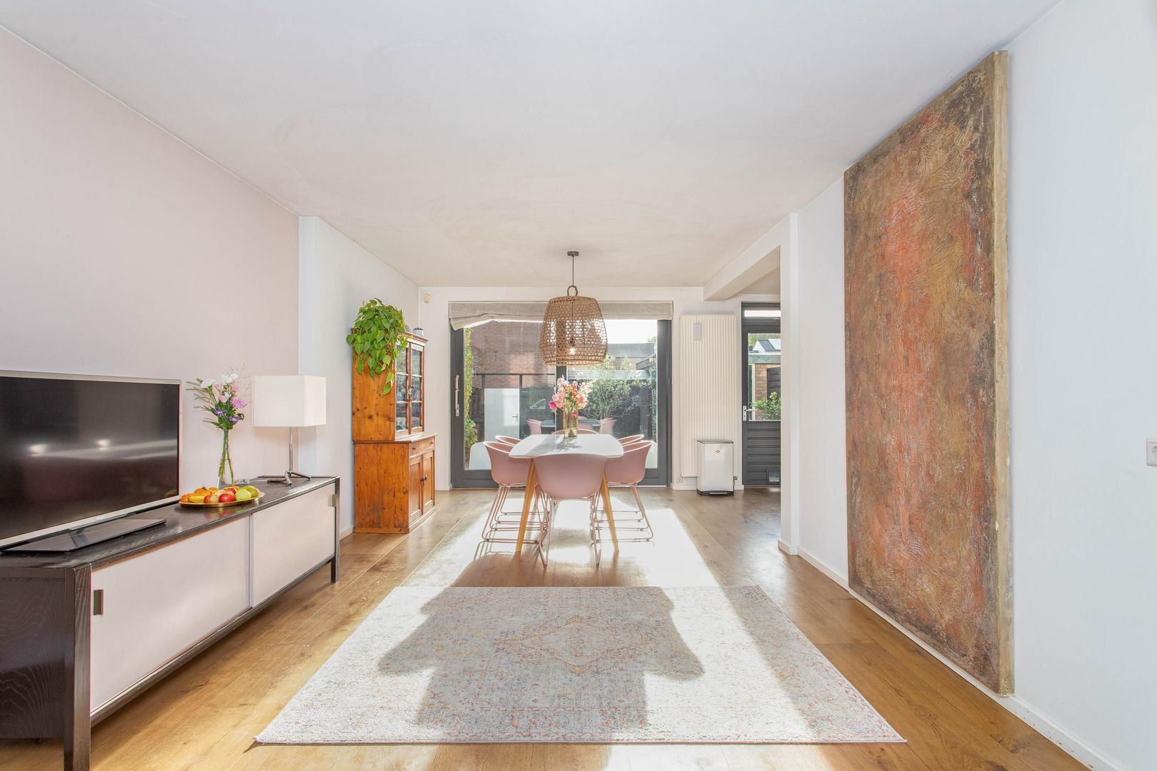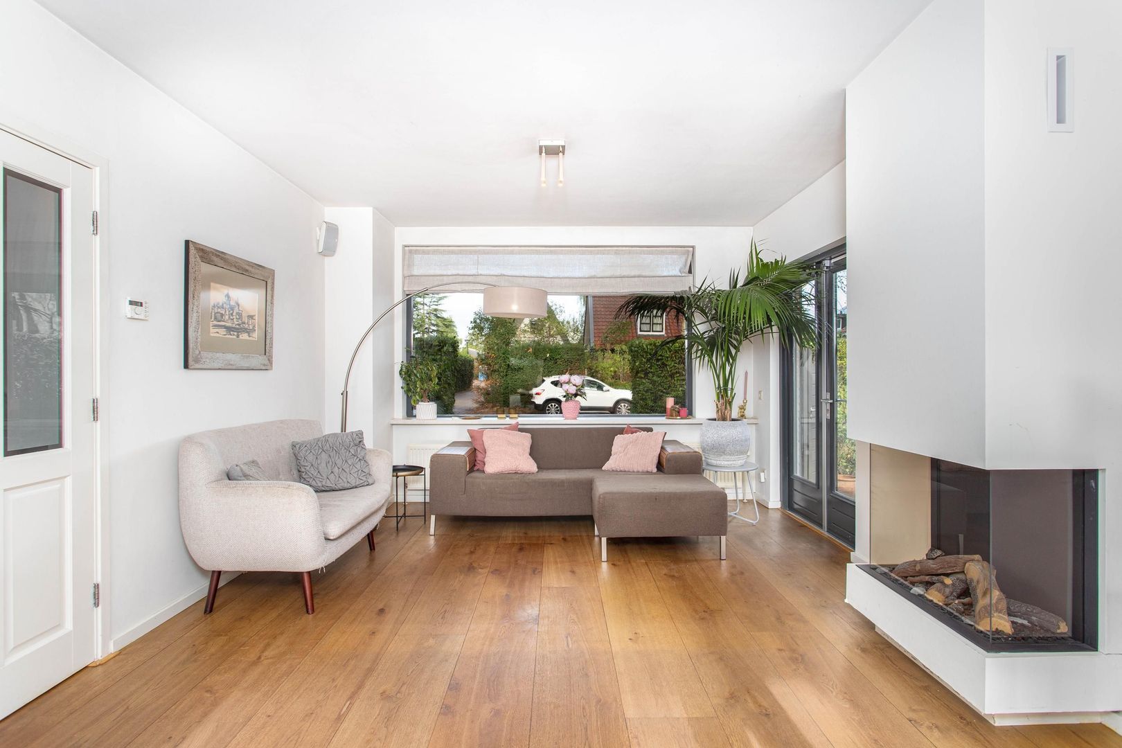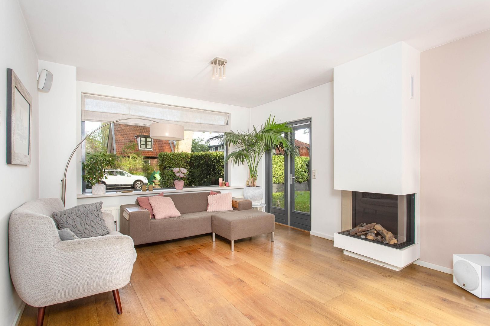 Begane grond: Diepe voortuin, entree, hal, trapopgang, meterkast, toilet met fontein en kast. Lichte woonkamer met eikenvloer, open haard en schuifpui naar de royale tuin. Luxe moderne open keuken aan de achterzijde voorzien van inbouwapparatuur, zoals 4 pits inductie kookplaat met combi-oven, afzuigkap, vaatwasser en koelkast. Heerlijke zonnige achtertuin gelegen op het zuidoosten en extra voor- en zijtuin met veel privacy met 2 schuren en achterom.