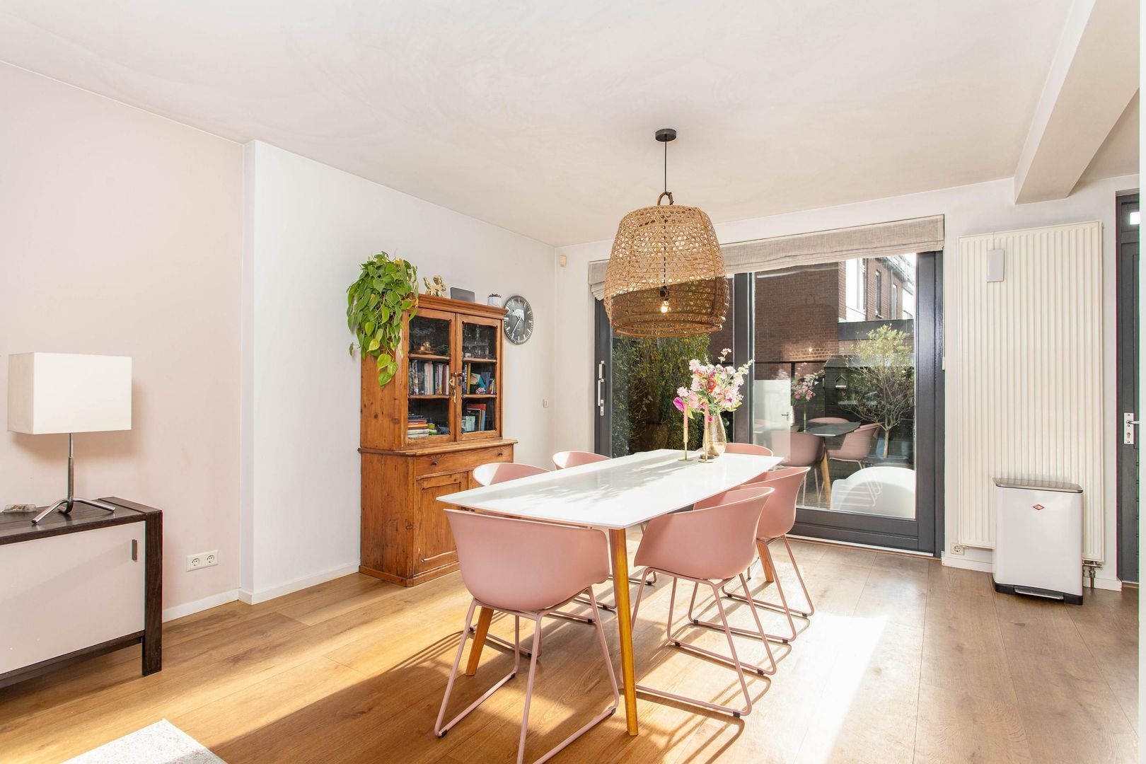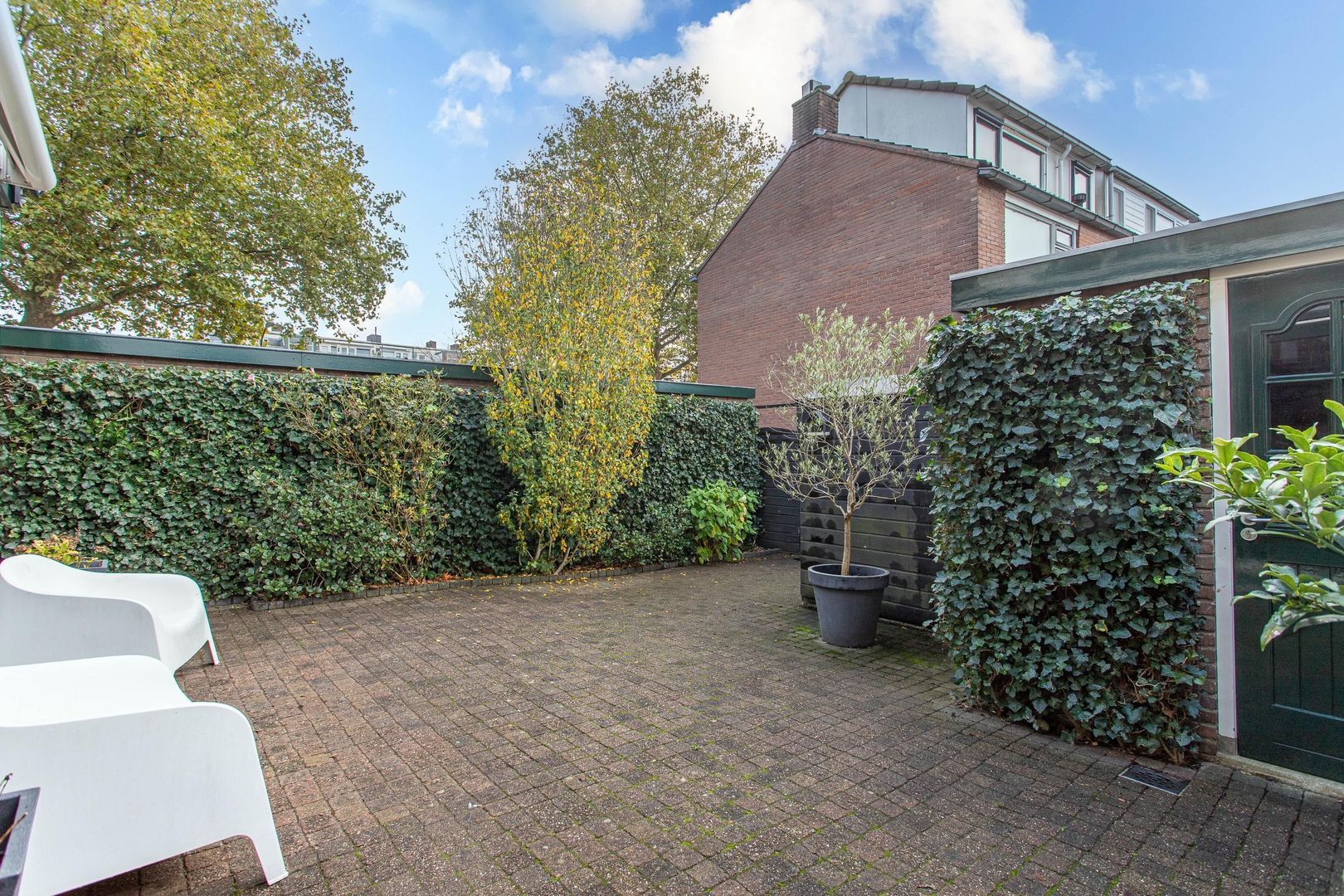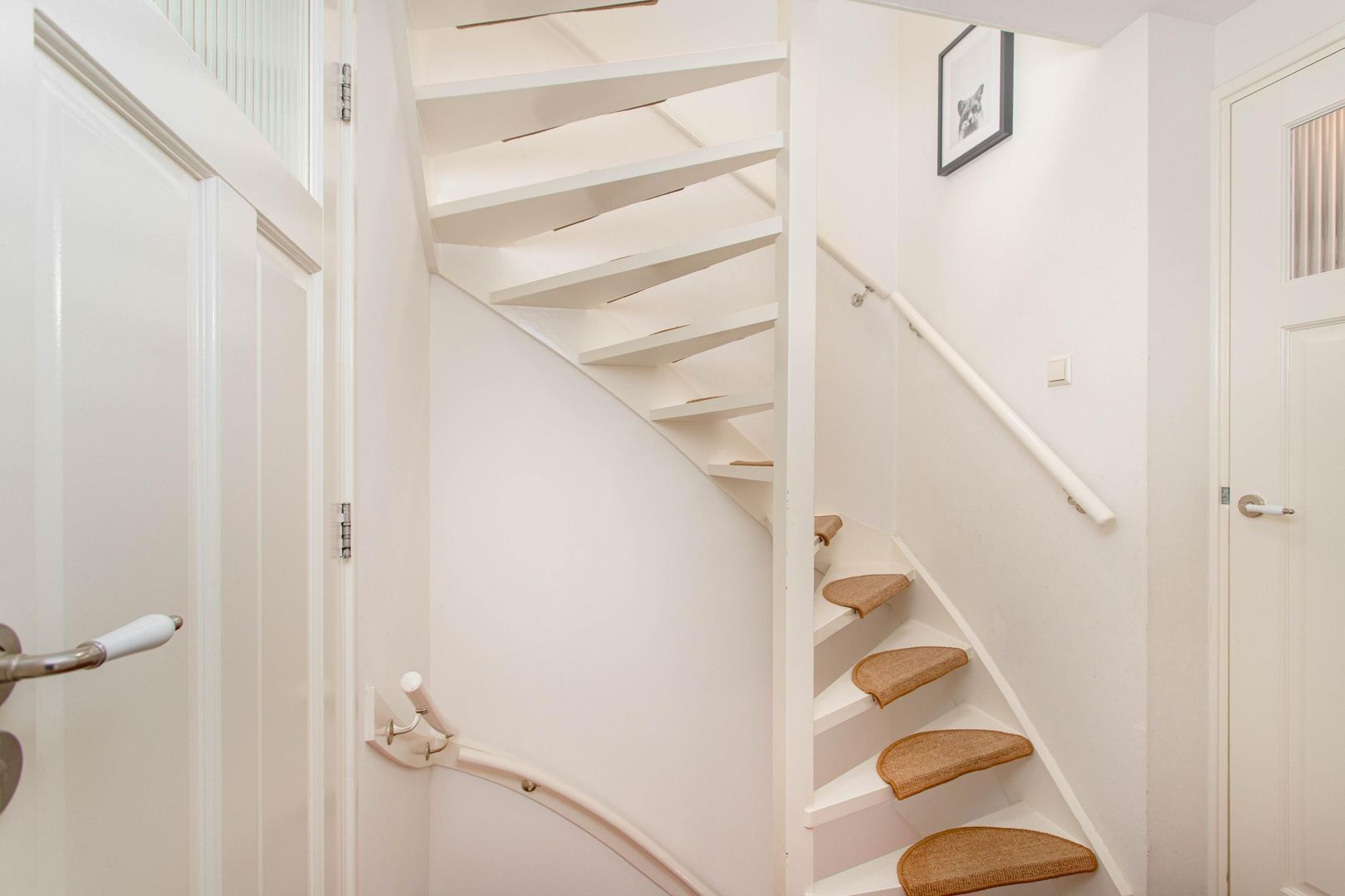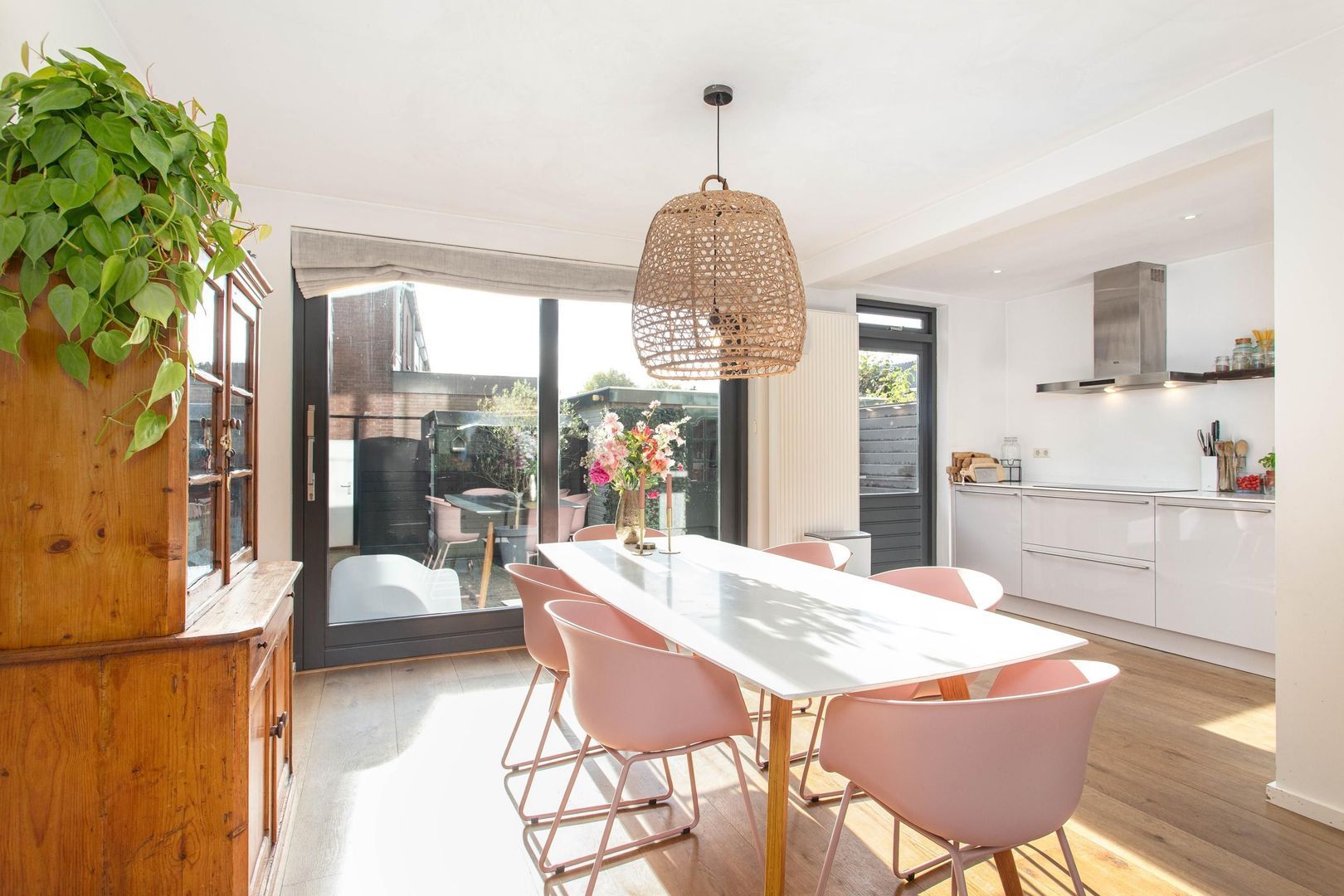 Begane grond: Diepe voortuin, entree, hal, trapopgang, meterkast, toilet met fontein en kast. Lichte woonkamer met eikenvloer, open haard en schuifpui naar de royale tuin. Luxe moderne open keuken aan de achterzijde voorzien van inbouwapparatuur, zoals 4 pits inductie kookplaat met combi-oven, afzuigkap, vaatwasser en koelkast. Heerlijke zonnige achtertuin gelegen op het zuidoosten en extra voor- en zijtuin met veel privacy met 2 schuren en achterom.