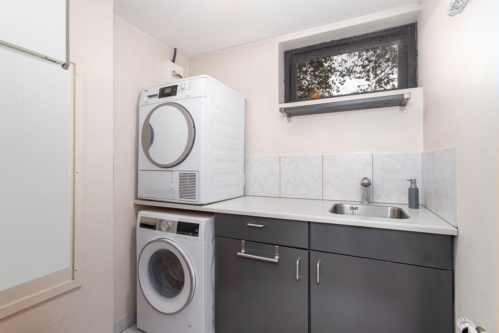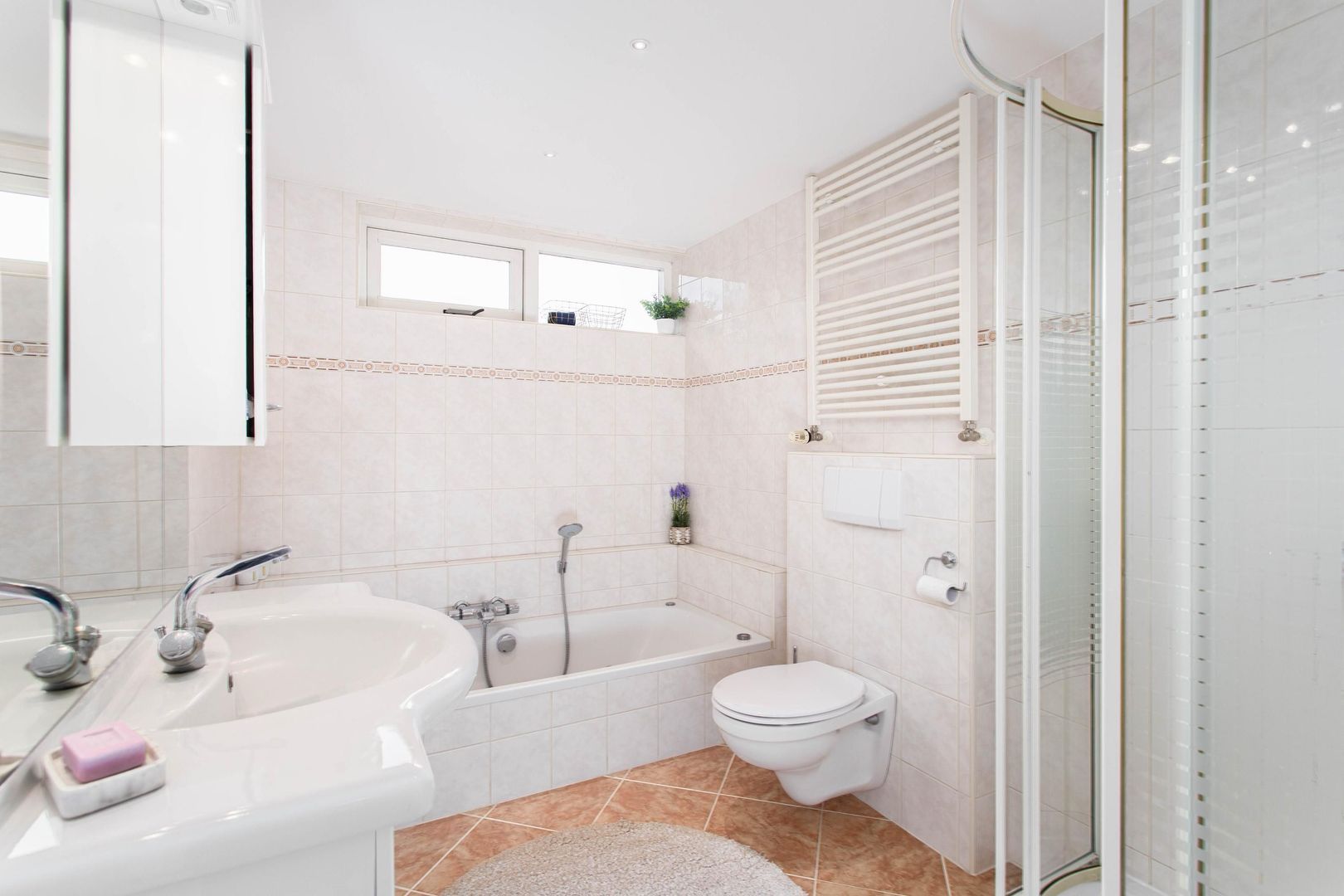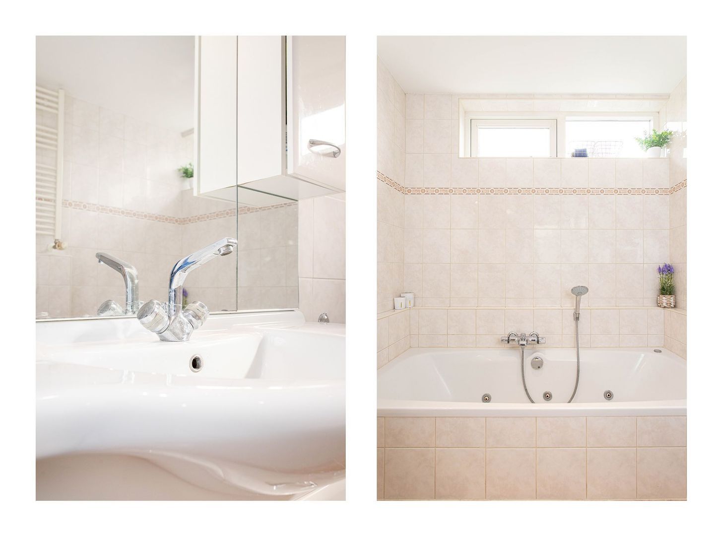 Overloop met trapopgang. De slaapkamer aan de achterzijde heeft een nette sisal vloerbedekking en tevens een deur naar het balkon. De slaapkamer aan de voorzijde is voorzien van een nette laminaatvloer. Riante badkamer met ligbad, douche, wastafel en zwevend toilet. Aparte wasruimte met opstelplaats wasmachine en droger.