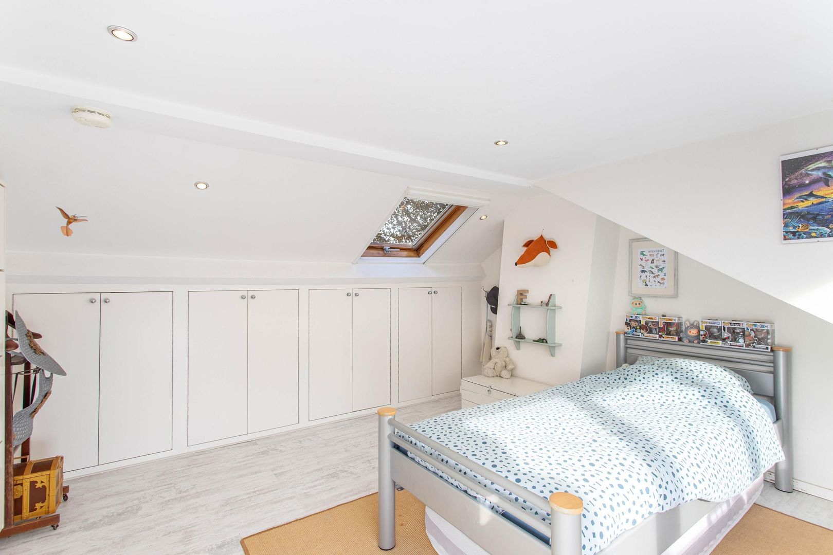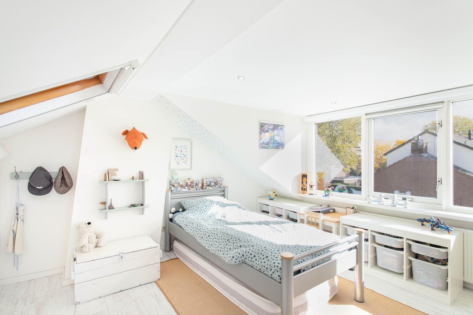 Ruime overloop met dakraam en ruime slaapkamer met veel inbouwkasten, dakkapel en een dakraam.