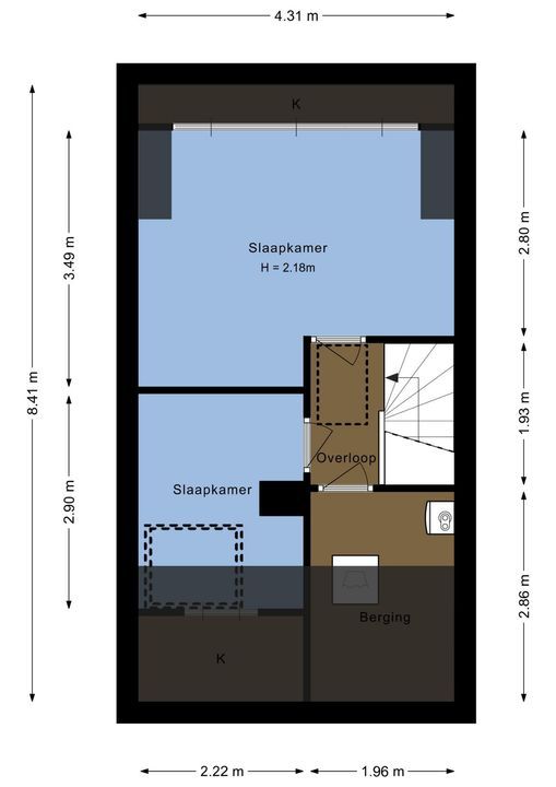 Twee slaapkamers, waarvan de ene aan de voorzijde en de andere aan de achterzijde is gelegen. Eén slaapkamer is voorzien van een dakkapel en de andere is voorzien van een dakraam voor extra lichtinval en knieschotten voor een optimale bergruimte.