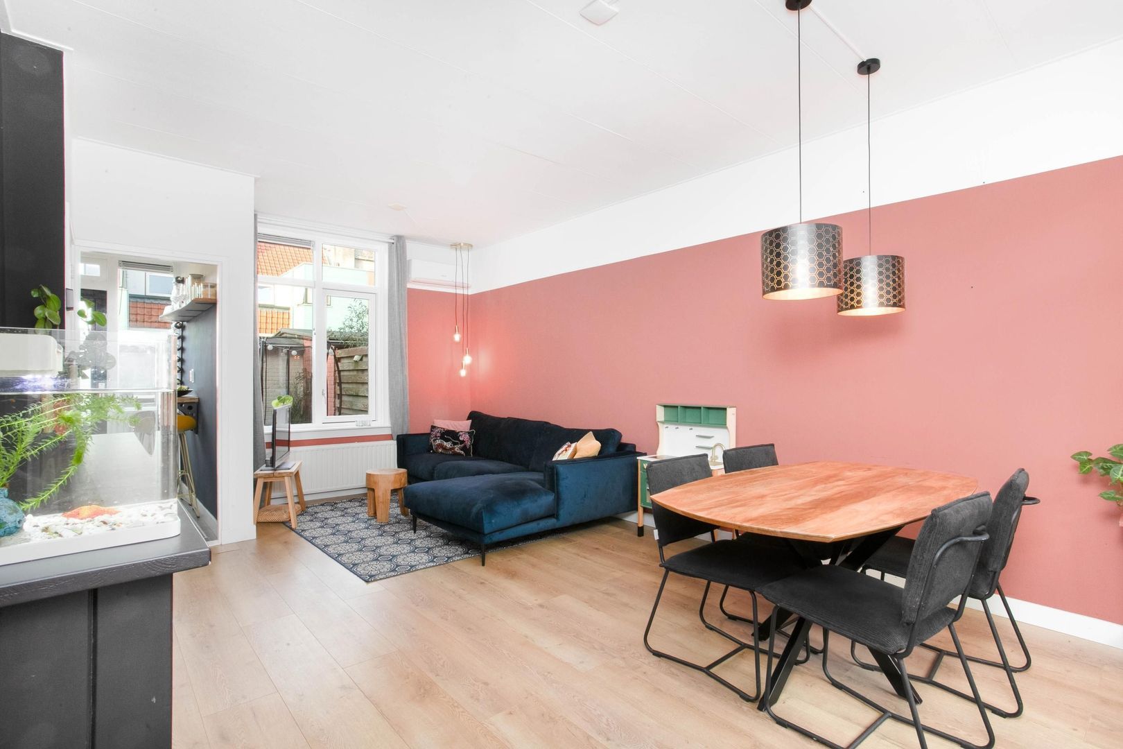 De ruime woonkamer is voorzien van een laminaatvloer en biedt plaats voor een fijne zithoek en eetgedeelte. De keuken is aan de achterzijde gelegen en is voorzien van diverse inbouwapparatuur zoals een koelkast, combimagnetron/ oven, vaatwasser en inductieplaat met afzuigschouw. De vloer van de keuken is voorzien van mozaïekpatroon. Tevens tref je hier de C.V.-ketel (Intergas 2011). Vanuit de keuken is de achtertuin bereikbaar.