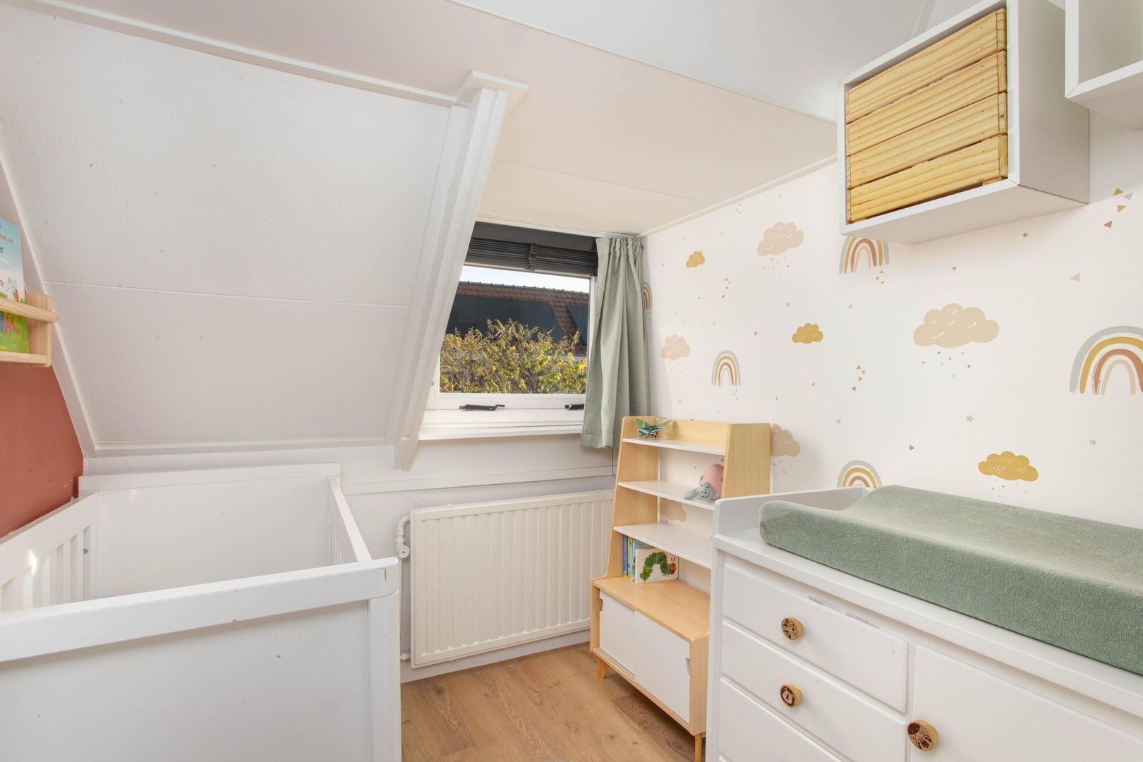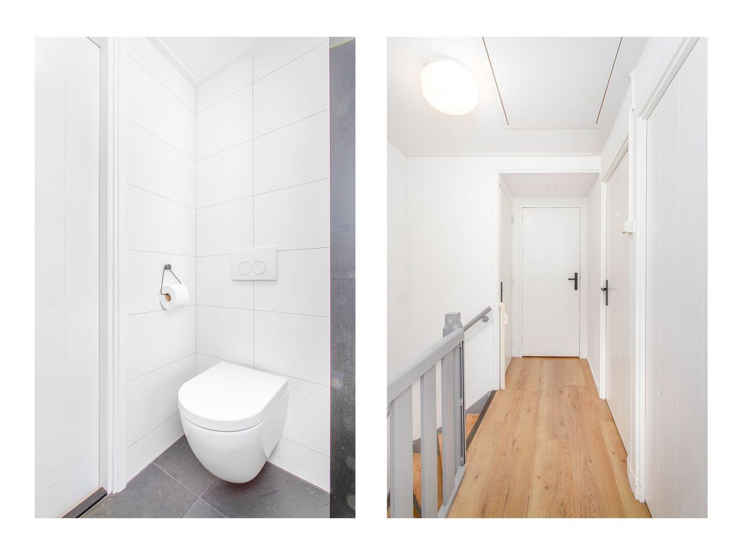 Via de overloop heb je toegang tot de drie slaapkamers en de badkamer. Alle drie de slaapkamers zijn voorzien van een verzorgde laminaatvloer. De moderne badkamer is voorzien van een wastafelmeubel, inloopdouche, ligbad en een tweede toilet. Op de overloop heb je toegang tot de bergzolder middels een vlizotrap.