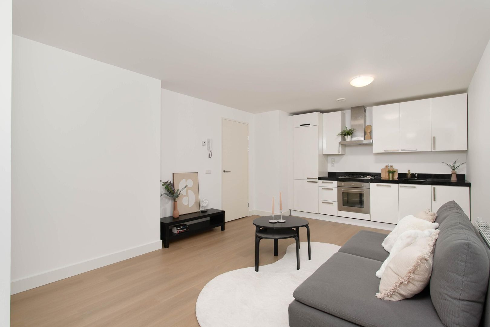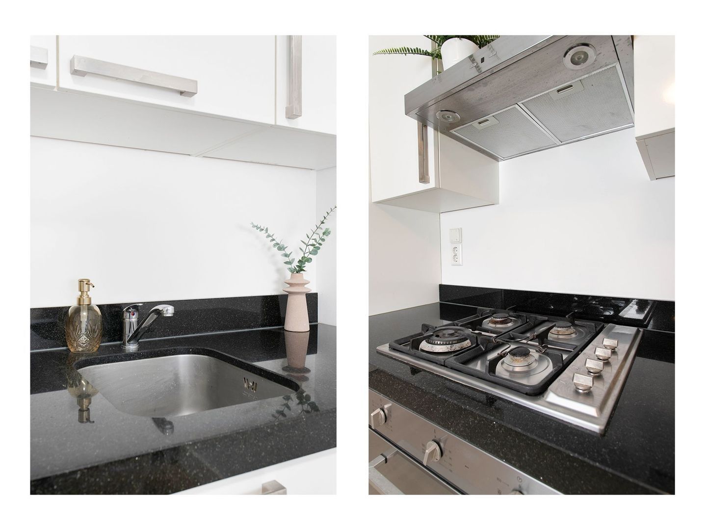 Bij binnenkomst in het appartement kom je uit in de woonkamer met open keuken en de badkamer. De woonkamer is praktisch en ruim opgezet en biedt volop mogelijkheden voor een flexibele indeling. De moderne keuken heeft een strakke afwerking en is uitgerust met diverse inbouwapparatuur: een koelkast, vriezer, oven, gasfornuis, afzuigkap en vaatwasser. Vanuit de woonkamer bereik je de lichte en sfeervolle slaapkamer.