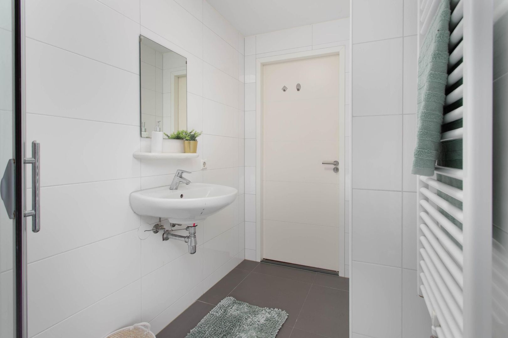 De badkamer is voorzien van een douche en wastafel. Vanuit de hal bereik je het separate toilet met opstelplaats voor de CV (2016). Zowel de woonkamer als de slaapkamer hebben openslaande deuren naar de tuin. In de warme maanden vormt deze tuin een verlengstuk van de leefruimte, waar je heerlijk kunt genieten van zon en buitenlucht.