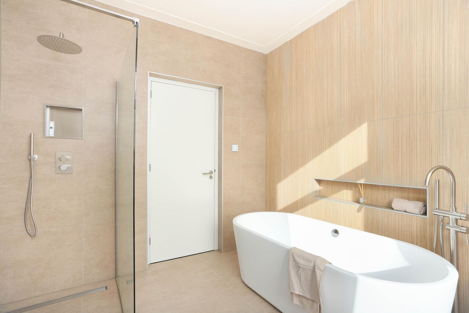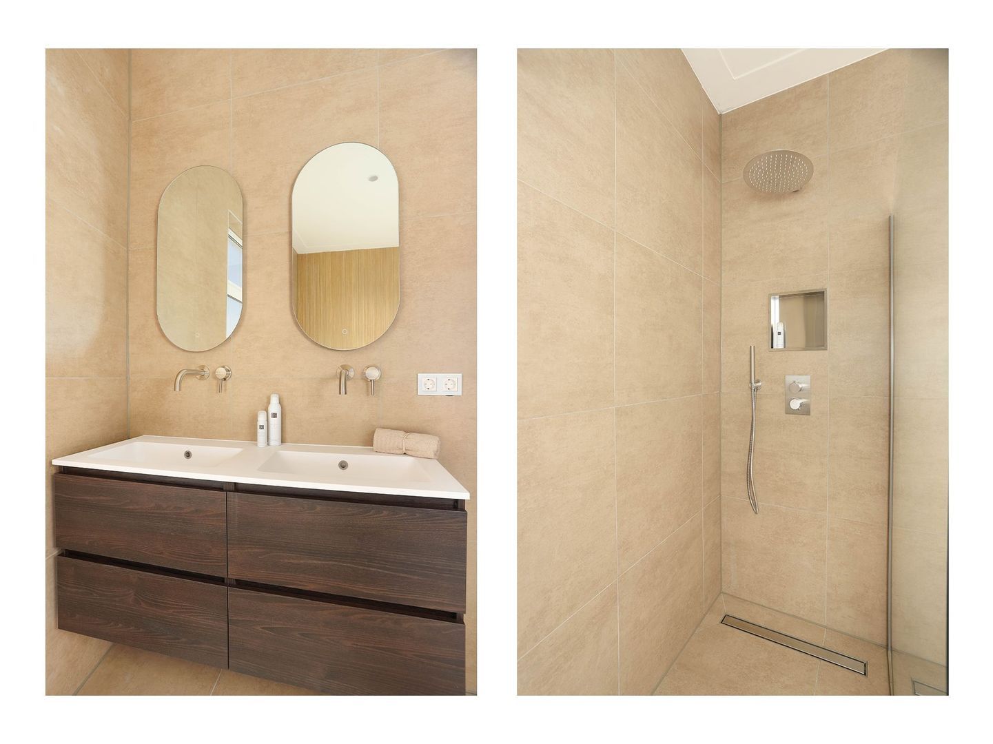 Overloop met apart toilet en toegang tot badkamer, alle 3 de slaapkamers en 3 ingebouwde kasten (1 meterkast). De badkamer heeft een ligbad, inloopdouche en dubbele wastafel. De 3 slaapkamer zijn riant en hebben veel lichtinval.