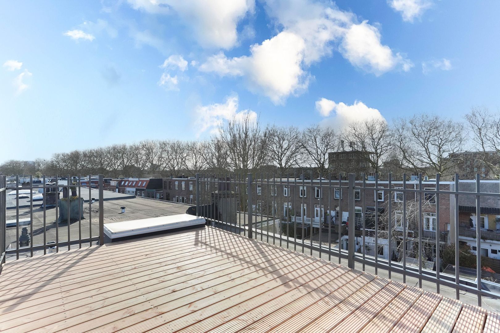 Geweldig dakterras van bijna 18 m2, waar je een mooi uitzicht en lekker kan genieten van de zon en een drankje.
