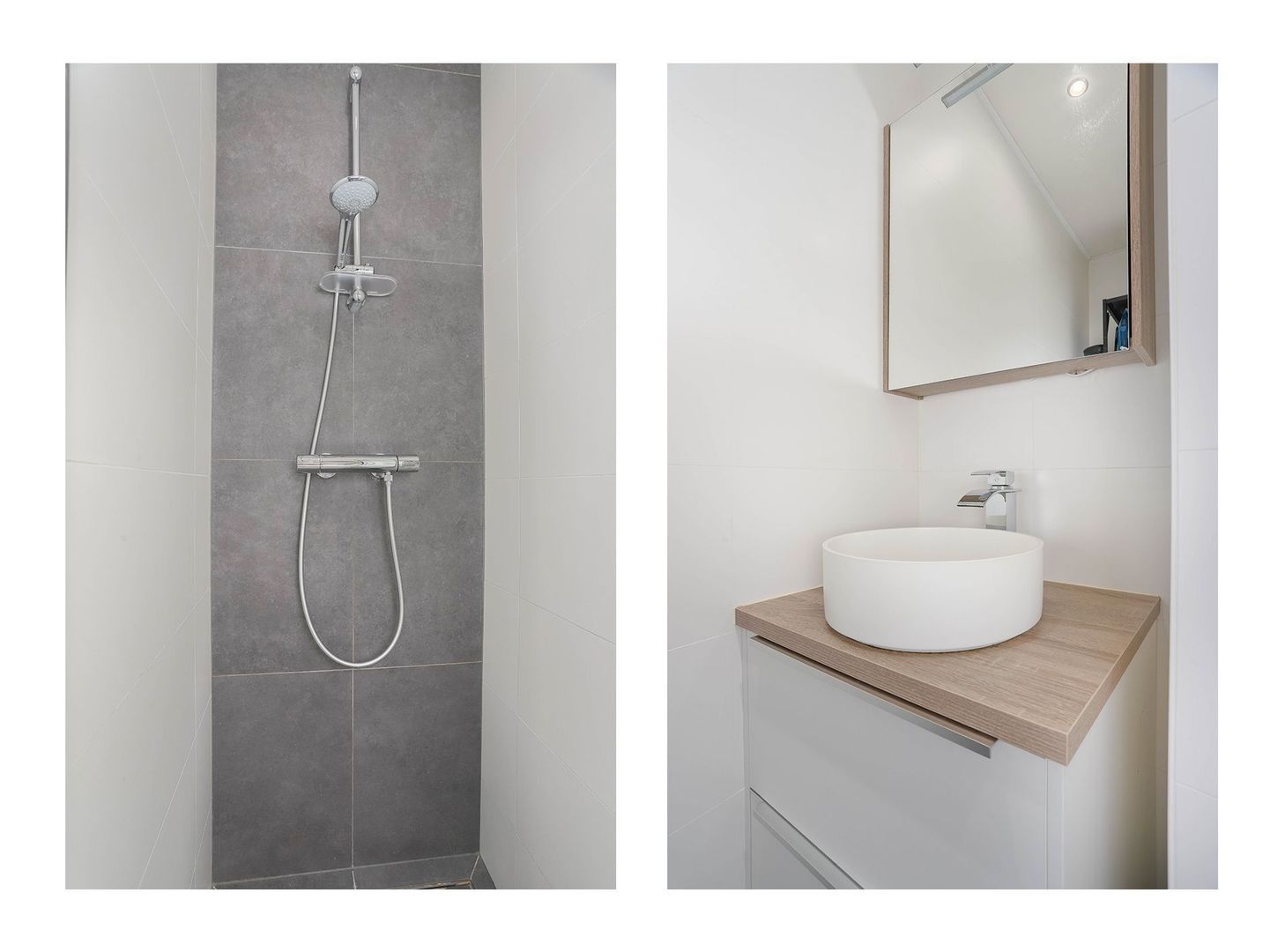 Op de eerste verdieping bevindt zich de overloop met toegang tot alle vertrekken. Aan de voorzijde ligt een ruime hoofdslaapkamer. Aan de achterzijde bevinden zich nog twee slaapkamers, perfect als kinder-, werk- of logeerkamer. De badkamer is modern, functioneel en compleet, uitgerust met een douchecabine, wastafel en aansluiting voor de wasmachine.