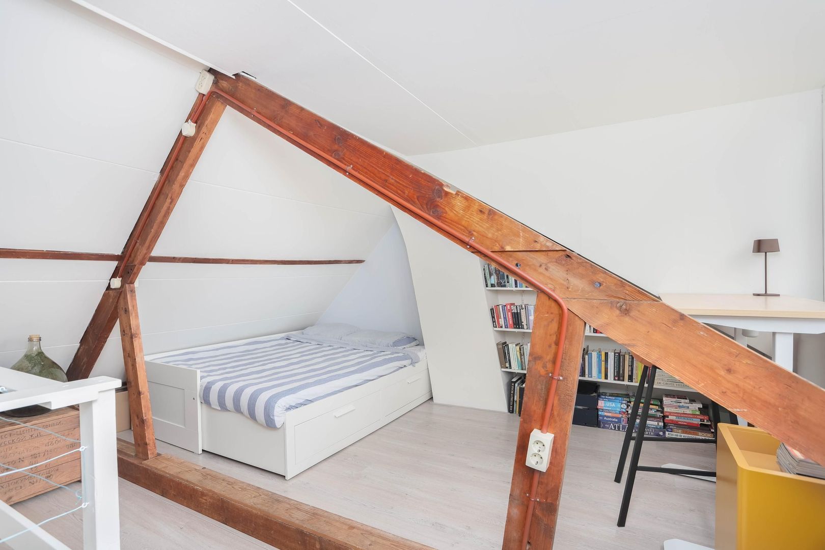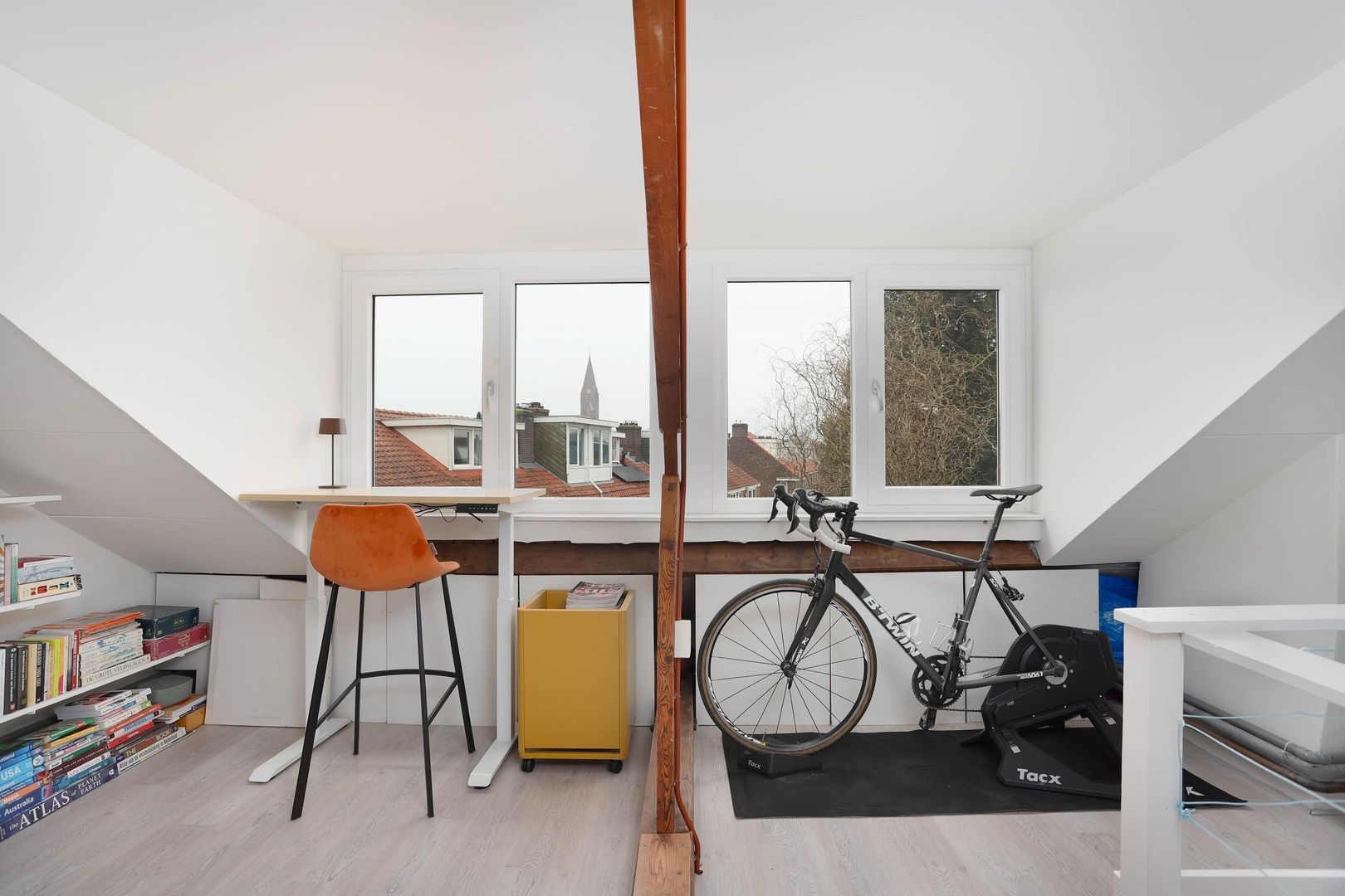 Via een vaste trap bereik je de ruime zolderverdieping met daglicht en de opstelling van de CV-combiketel. Deze verdieping is voorzien van een dakkapel, wat zorgt voor extra licht en ruimte. Verder heb je vanuit de zolder prachtig uitzicht op de oude buurtkerk, de Sint-Gertrudiskerk. Hierdoor is de zolder uitstekend geschikt als volwaardige extra slaapkamer, thuiswerkplek of hobbyruimte.